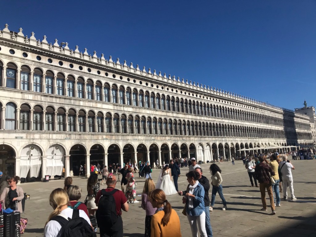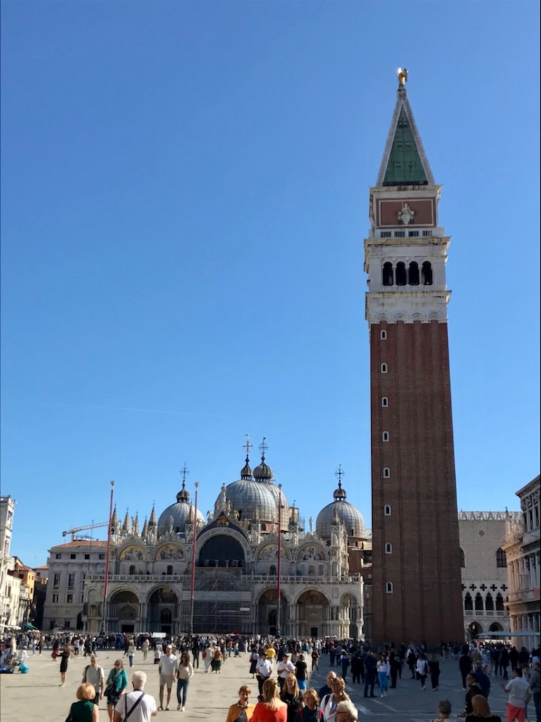 Retour sur la place St Marc. La Basilique. Nous ne la visiterons pas. La queue est trop longue et pas de possibilité d’acheter sur internet pour aujourd’hui.