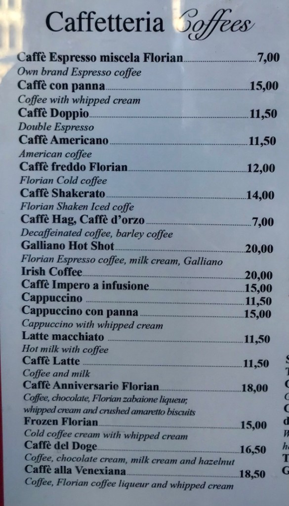 Le café Florian, sous les arcades de la place St Marc. Il date de 1720.