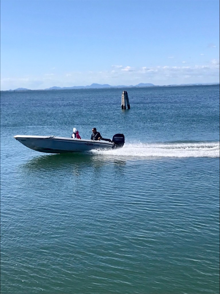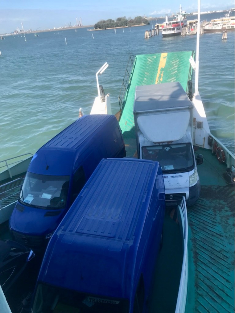 Premier ferry pour aller au Lido. Il est chargé à bloc.