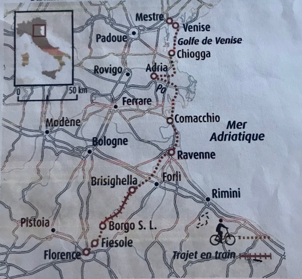 Vous voilà donc en route vers Florence ? Et le beau temps persiste ! Le delta du Po ! Je vais devoir réviser ma géographie de l’Italie !! Les photos se succèdent, merci Aline c’est vraiment agréable, je me régale ! Ici on nous promet la pluie pour bientôt…à voir !! Bonne route !!