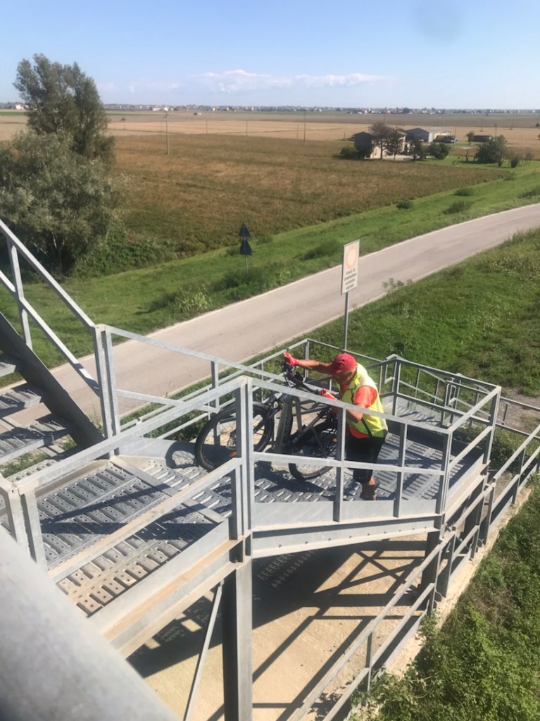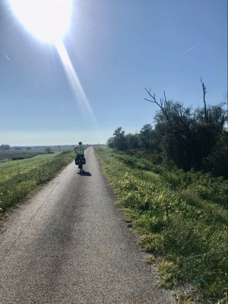 Nous allons rouler souvent sur les digues du Po. C’est très agréable, nous sommes en hauteur et il n’y a personne.