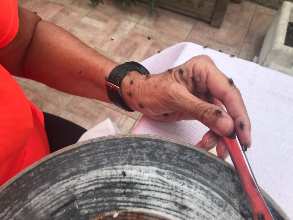 Et ça s’arrête là. Il a commencé à pleuvoir jusqu’à notre arrivée à l’hôtel. Une bonne heure. Si nous ne nous étions pas arrêtés pour manger des mouches nous aurions évité la pluie…