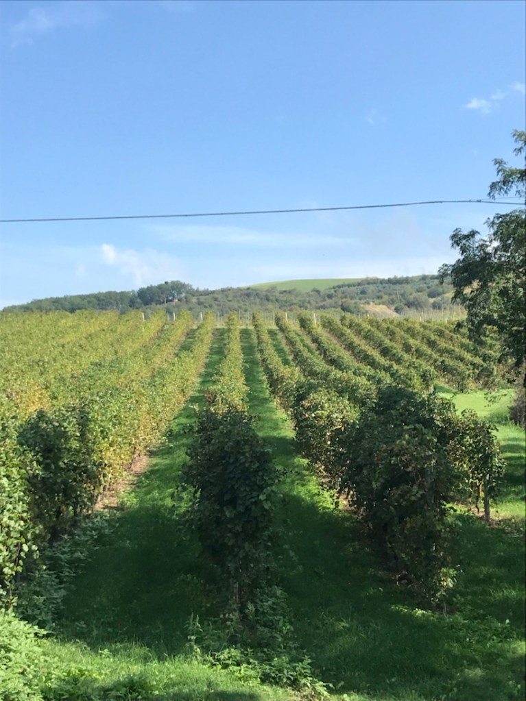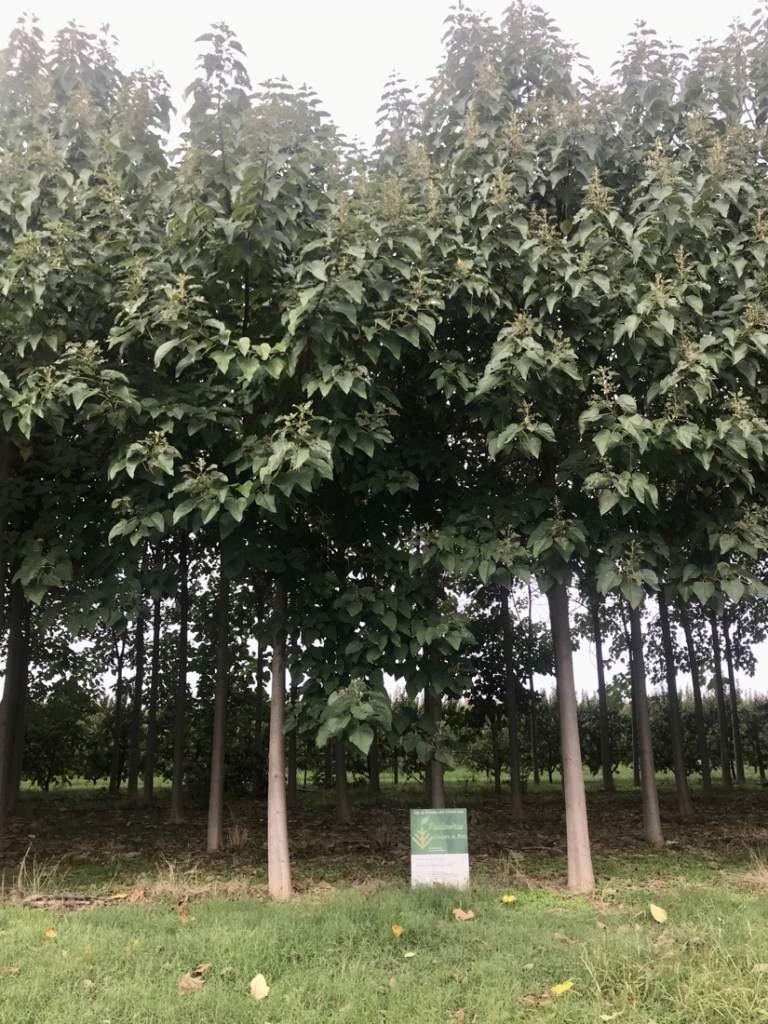 Les paulownia de notre cousin Nicolas. Ils ne sont pas encore aussi grands. Il a planté ces arbres car ils poussent très vite et ensuite on les coupe pour vendre le bois pour faire des planches.