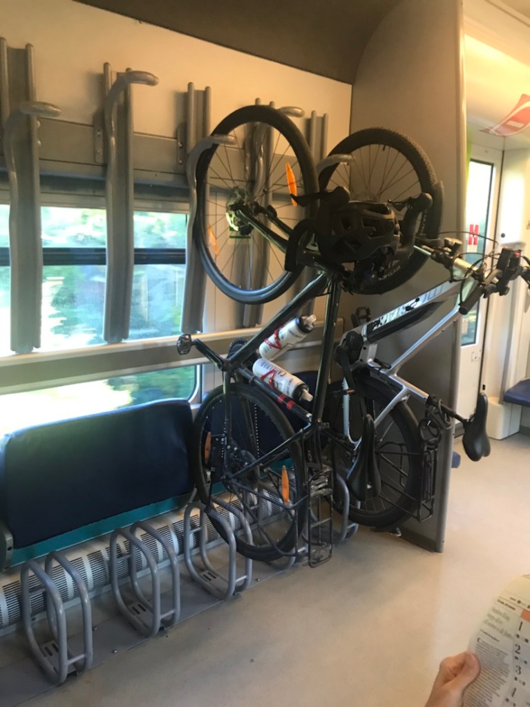 Conclusion de la journée : nous nous régalons plus sur notre vélo que de marcher en ville. Aujourd’hui, c’est certainement à cause de notre journée qui a commencé tôt pour pouvoir prendre le train, ajouté aux côtes, à la pluie lorsque nous pédalions… c’est pour cela que nous n’avons pas apprécié la visite de la ville.