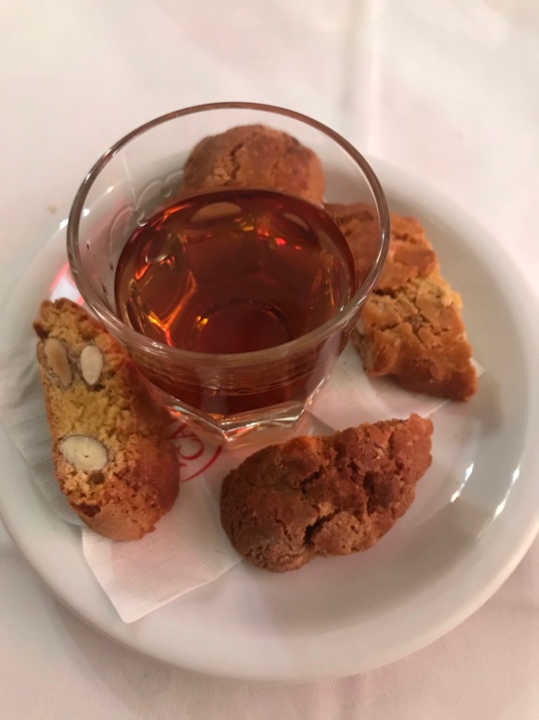 Quelques cantuccini avec du vino Santo et nous sommes prêts pour arpenter Florence. Il y avait des tripes pour moi juste avant. Un délice !!!