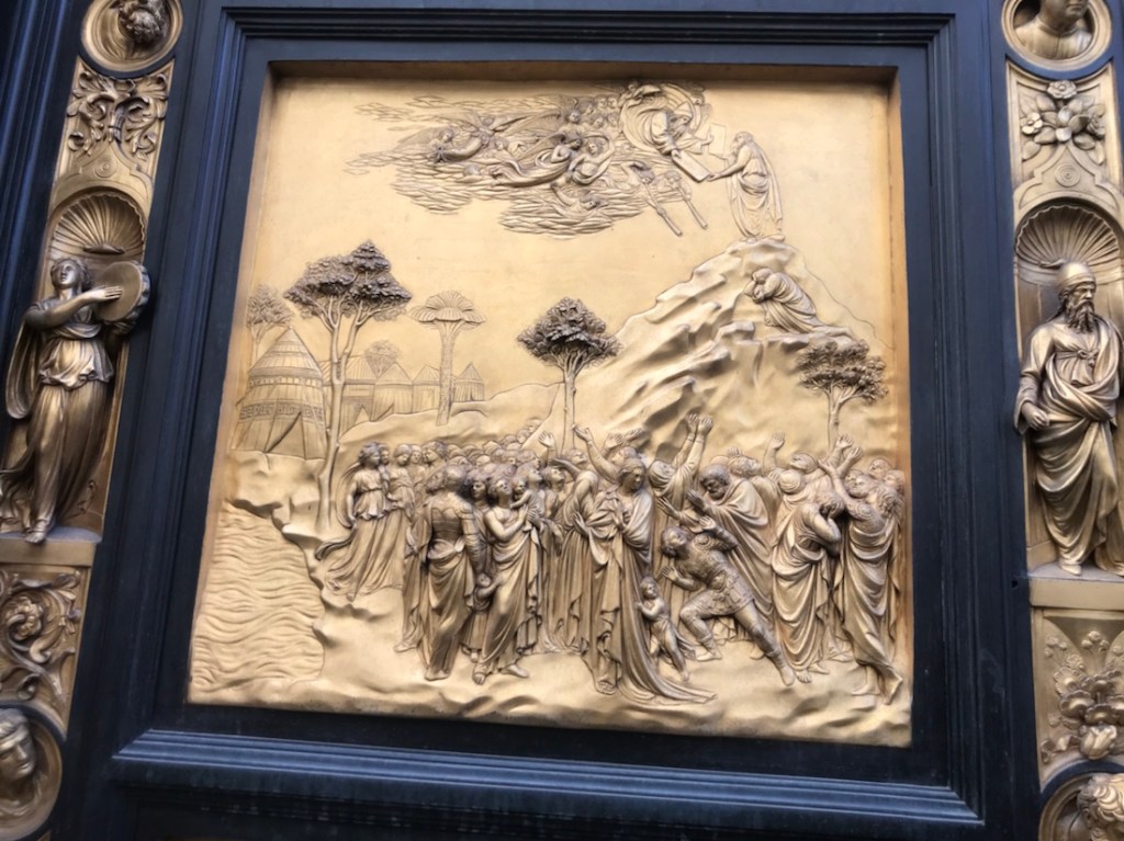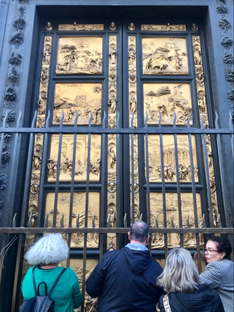 J’aurais aimé prendre cette photo d’une porte du baptistère sans personne devant. Au bout de dix minutes j’ai capitulé, c’était toujours les mêmes qui n’ont pas bougé.