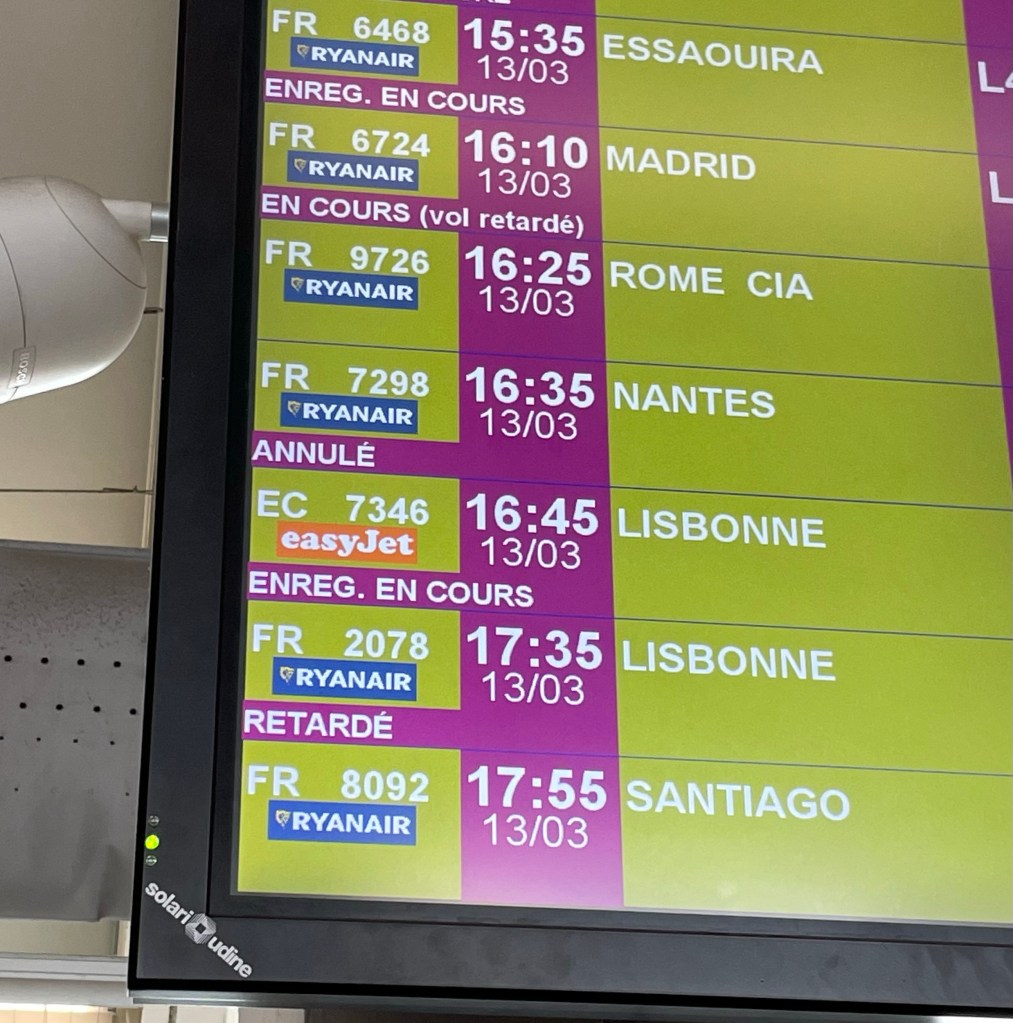 Ryanair 17:35 Lisbonne… c’est notre vol !!! Il ne manquait plus que ça, espérons qu’il ne deviendra pas comme celui de Nantes !!!