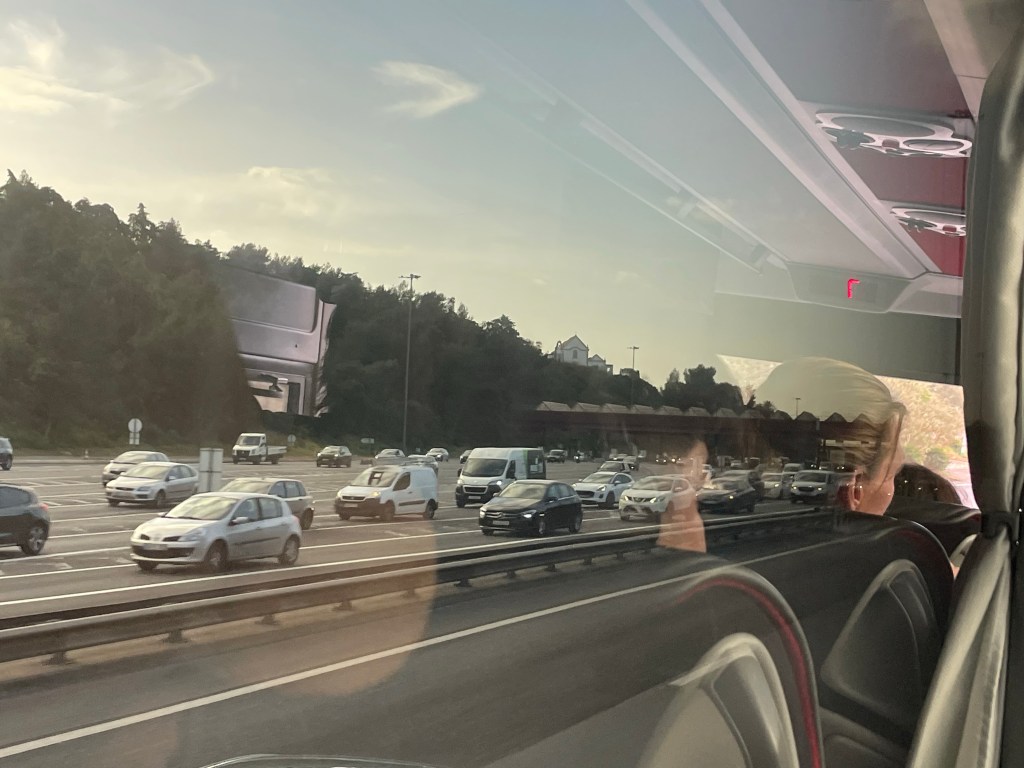 Pas de petit déjeuner à l’hôtel, c’est trop tôt, nous allons jusqu’à la gare routière prendre un car (un car ou un bus ? Il faut demander la différence à Valentin… souvenir de nos trajets lorsqu’il était petit).