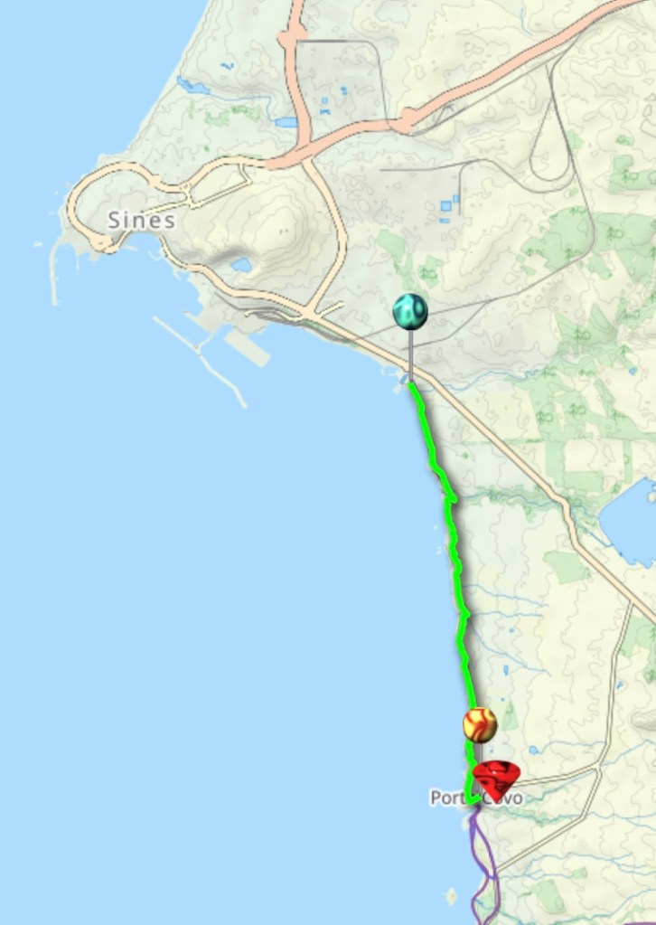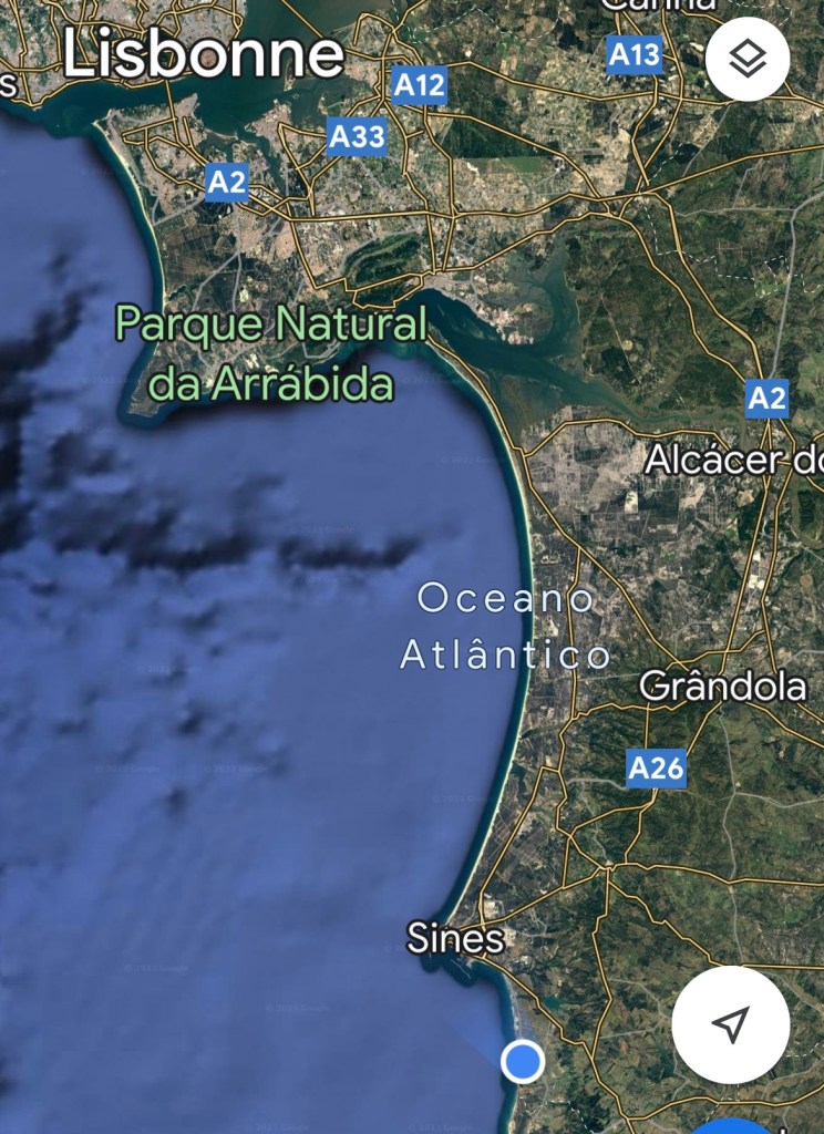 Le petit rond bleu en bas c’est notre position ce soir à Porto Covo.