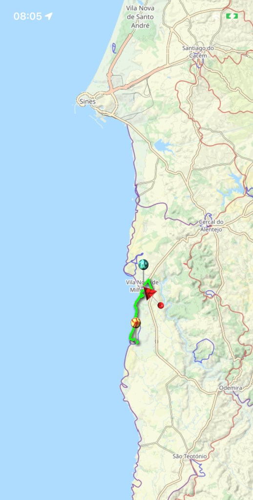 Sines, notre point de départ, commence à s’éloigner. Petit trajet du jour.