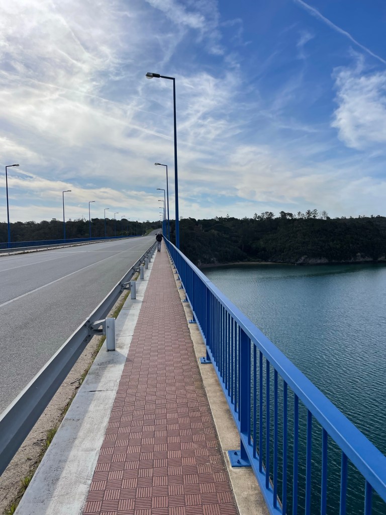 C’est la troisième fois que nous passons sur ce pont. La première fois en 2012, dans l’autre sens, c’était la fin de la randonnée, je l’avais trouvé très long. La deuxième fois en vélo en 2021… facile !!! Et aujourd’hui… début de randonnée, tout va bien.