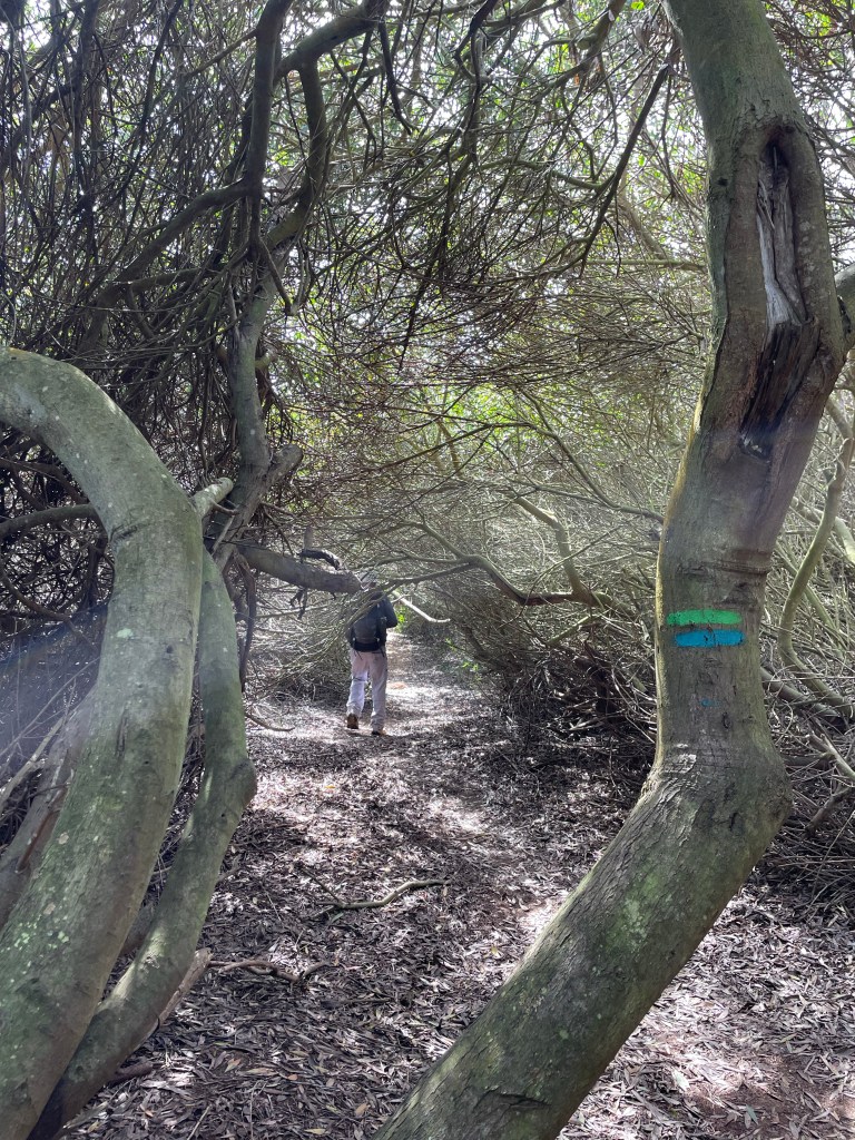 Le chemin est taillé sous les arbres et de temps en temps il faut se baisser pour pouvoir passer.