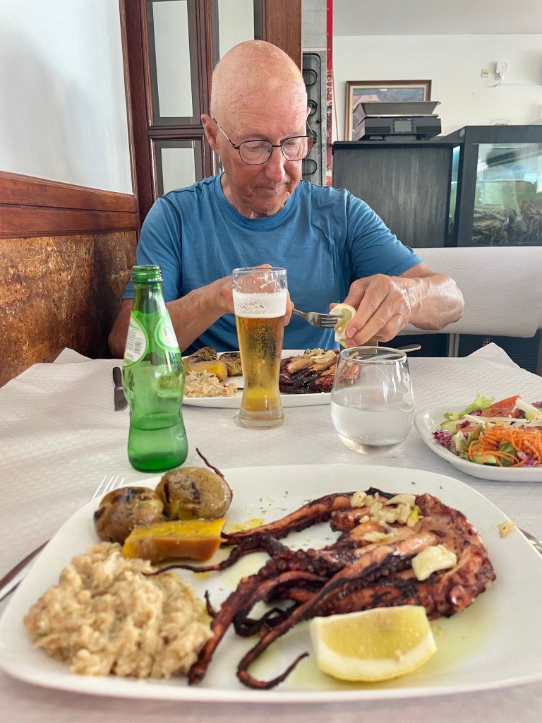 Azenha do Mar. Le restaurant était plein, des groupes attendaient dehors… deux personnes c’est facile à caser, nous avons été pris de suite !!!
