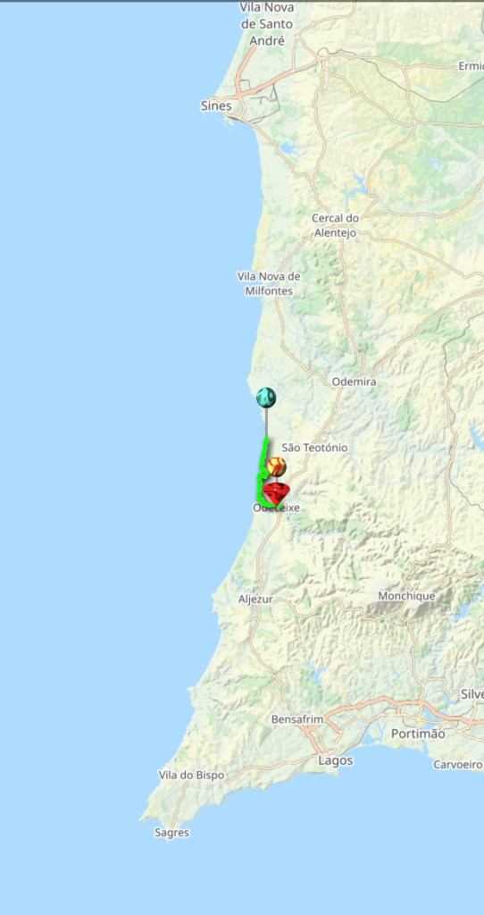 Nous sommes partis de Sines et nous devons aller à Lagos, en bas en Algarve.