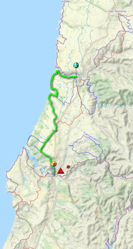 Aujourd’hui, nous n’avons pas marché longtemps au bord de l’eau, nous avons rejoint le chemin historique qui passe à l’intérieur des terres. Le tracé était commun aux deux chemins.