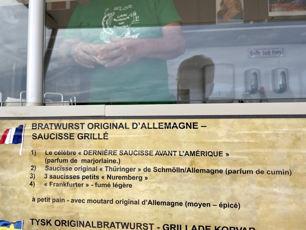 Ça faisait un an et demi que je rêvais de manger une bratwurst, il était fermé lorsque nous sommes passés en vélo en novembre, il y a un an et demi.