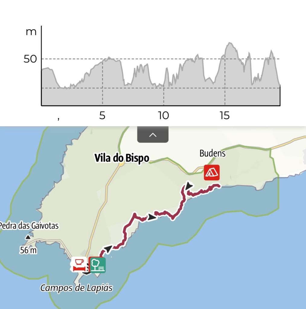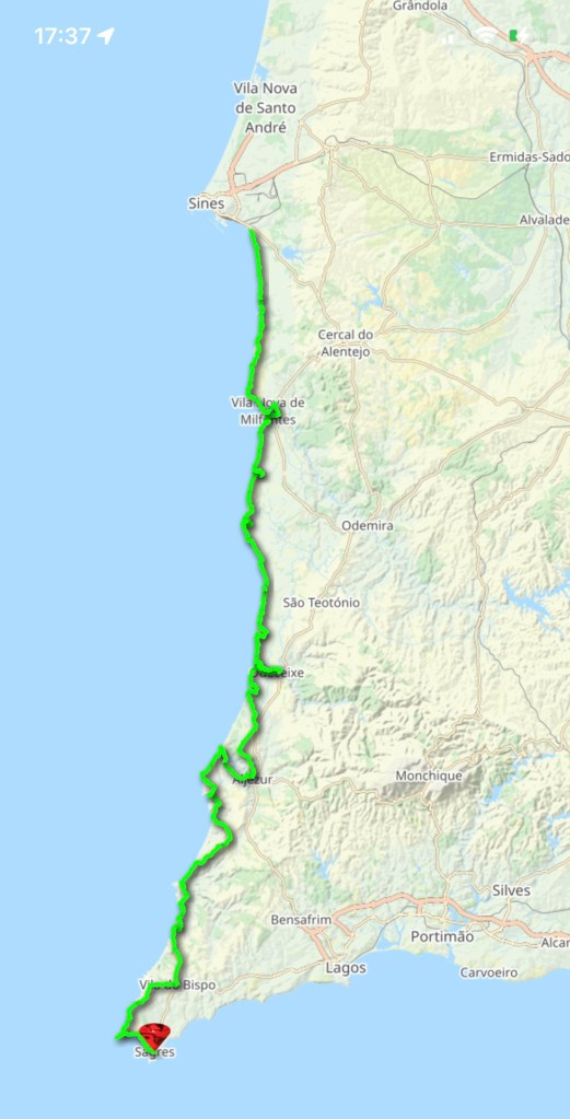 Lorsque j’ai vu le profil altimétrique du parcours de demain, Sagres Salema qui est marqué très difficile avec 7 descentes, j’ai décidé de prendre un jour de repos et de ne pas le faire. Hier il n’y avait que 2 descentes…