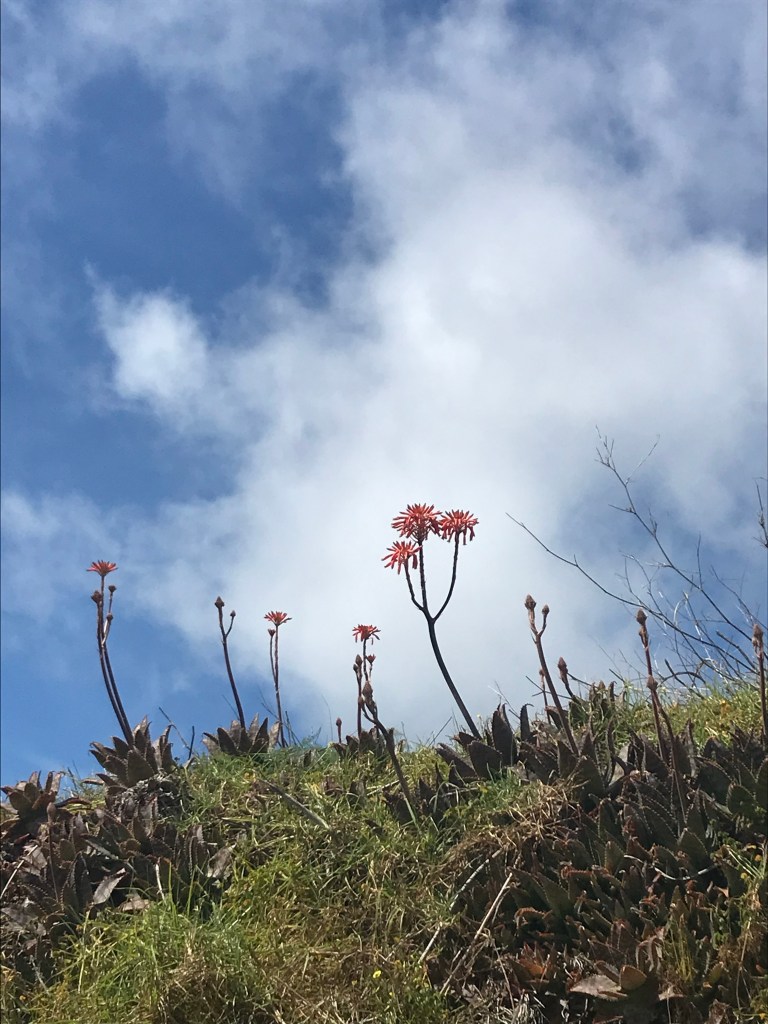 Après avoir passé la porte que j’ai matérialisée sur la photo par la pointe de la flèche, on se retrouve sur un immense terrain bordé par les falaises.