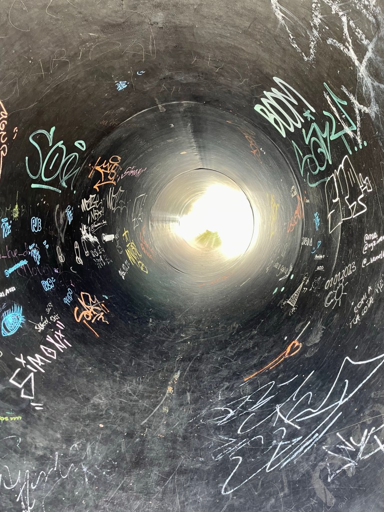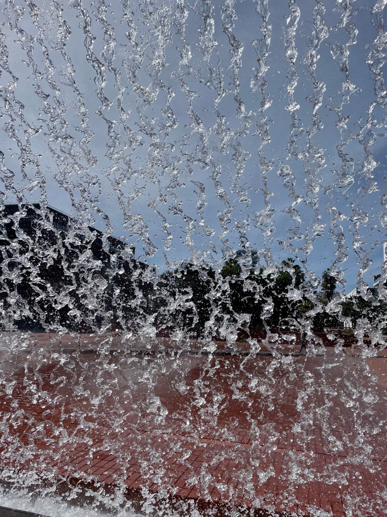 On dirait une vitre brisée… c’est sous la chute d’eau.