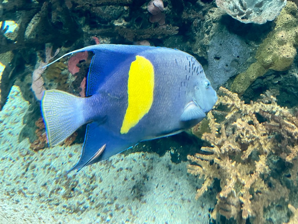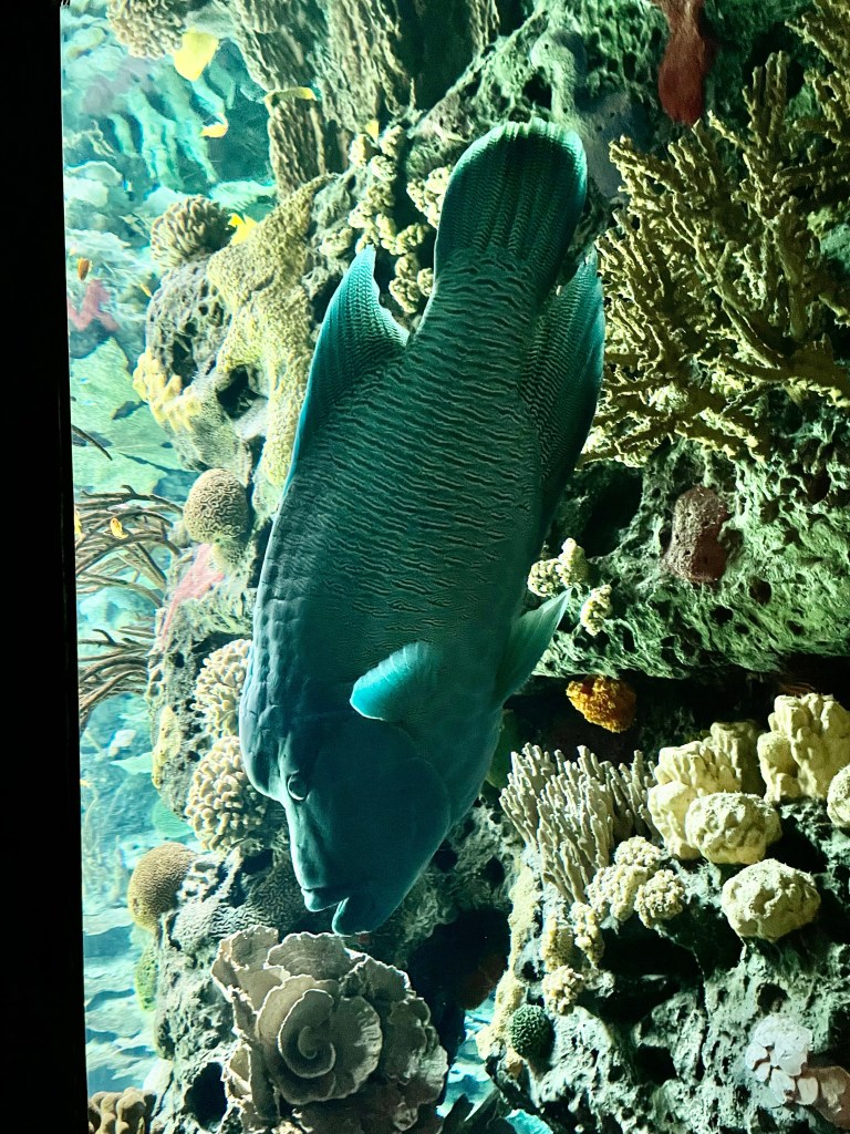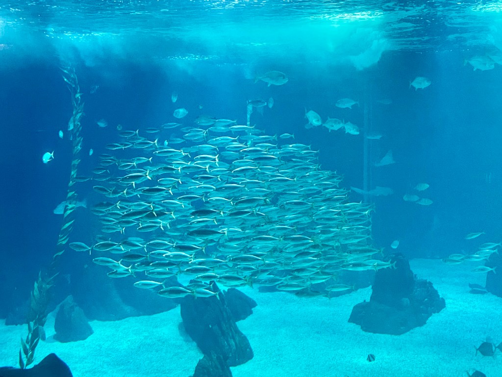 C’était très amusant de voir ce banc de poissons, ils étaient toujours groupés de n’importe quel côté qu’on les regardait, dans le grand aquarium.