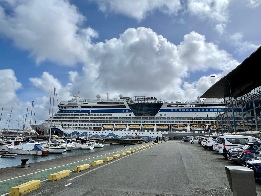 Un gros bateau dans le port. Il est parti le 12 mars de Montego Bay en Jamaïque et il doit arriver à Hambourg le 6 avril.