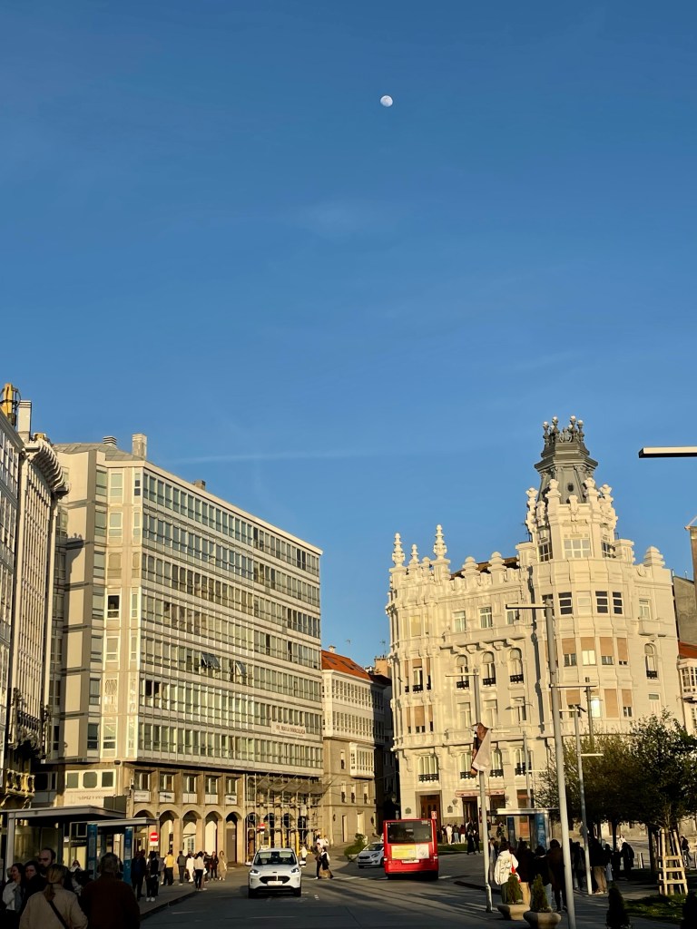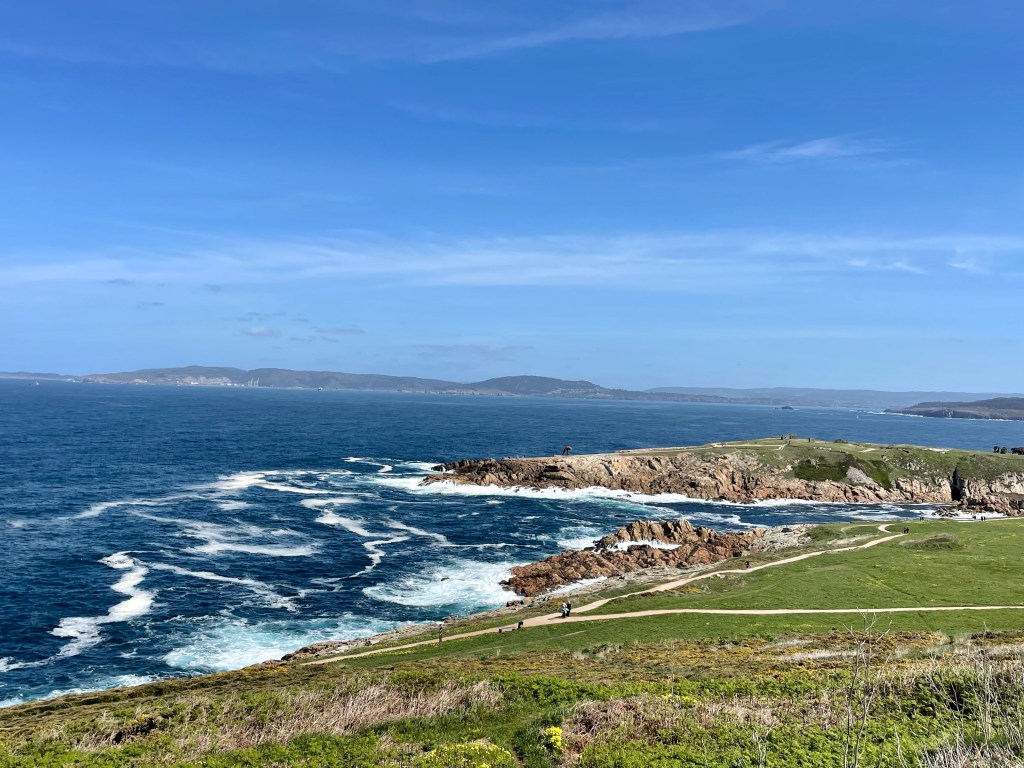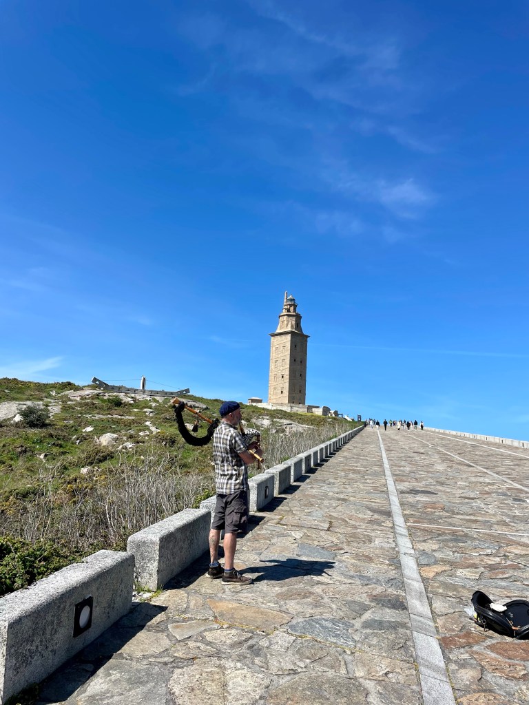 Torre de Hercules. Petite plage où des gens se baignaient. Il fait très beau aujourd’hui mais de là à se baigner… de temps en temps il y a un petit vent coulis un peu frais !!!