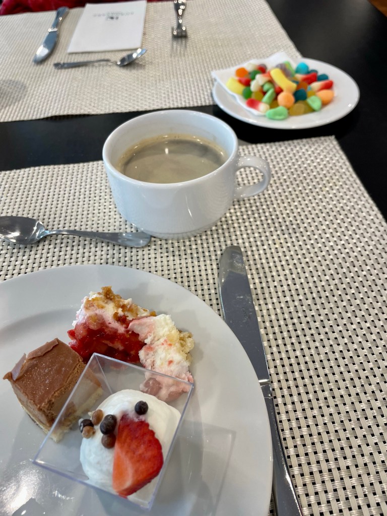 Jusque-là, pas d’excès… mais en rentrant à l’hôtel pour se reposer nous avons rencontré notre serveur préféré qui a insisté pour que nous venions boire un café dans le restaurant. Vous pouvez aussi aller au buffet de dessert…