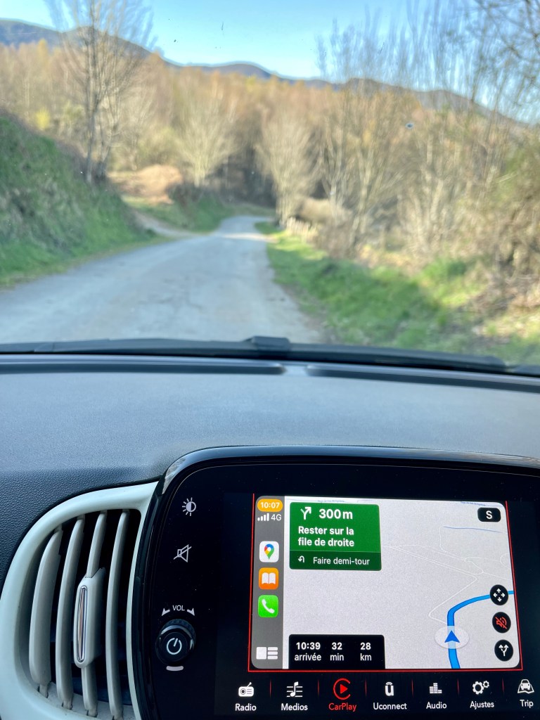 Je pars direction Tricastela, j’ai raté un croisement mais je trouve que mon GPS exagère un peu en me demandant de rester sur la file de droite sur une aussi petite route.