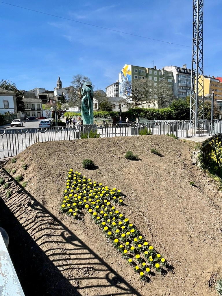 Nous avons mangé à midi dans Sarria ou plutôt après 15 h… sur la terrasse d’un restaurant, au milieu des pâquerettes, que du bonheur.