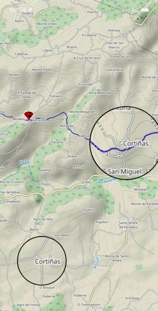 J’avais programmé mon GPS pour voir passer Yves à Cortiñas, sans savoir qu’il y en avait 2. Et bien sûr il m’a emmené à celui du bas…