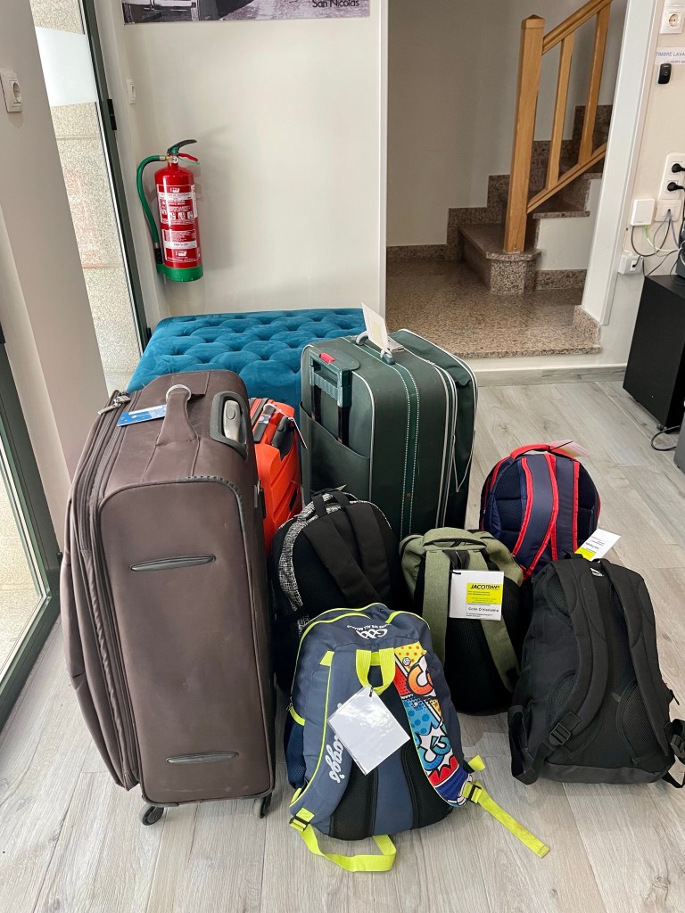 C’est la même chose dans tous les lieux où nous dormons, les valises attendent les marcheurs. Il y en a qui doivent pouvoir changer d’habits tous les soirs…