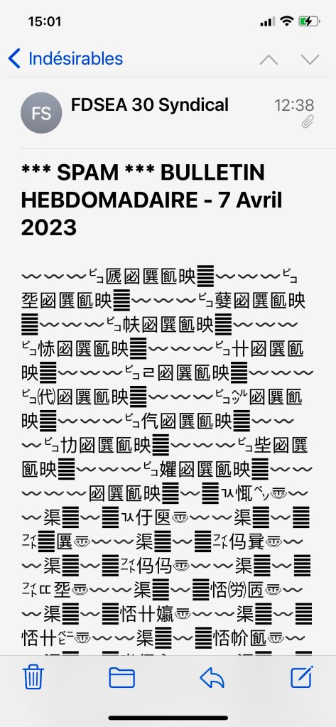 Étrange ce mail, et pourtant c’est bien le bulletin de la FDSEA que je reçois toutes les semaines !!!