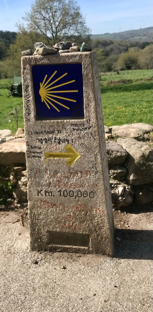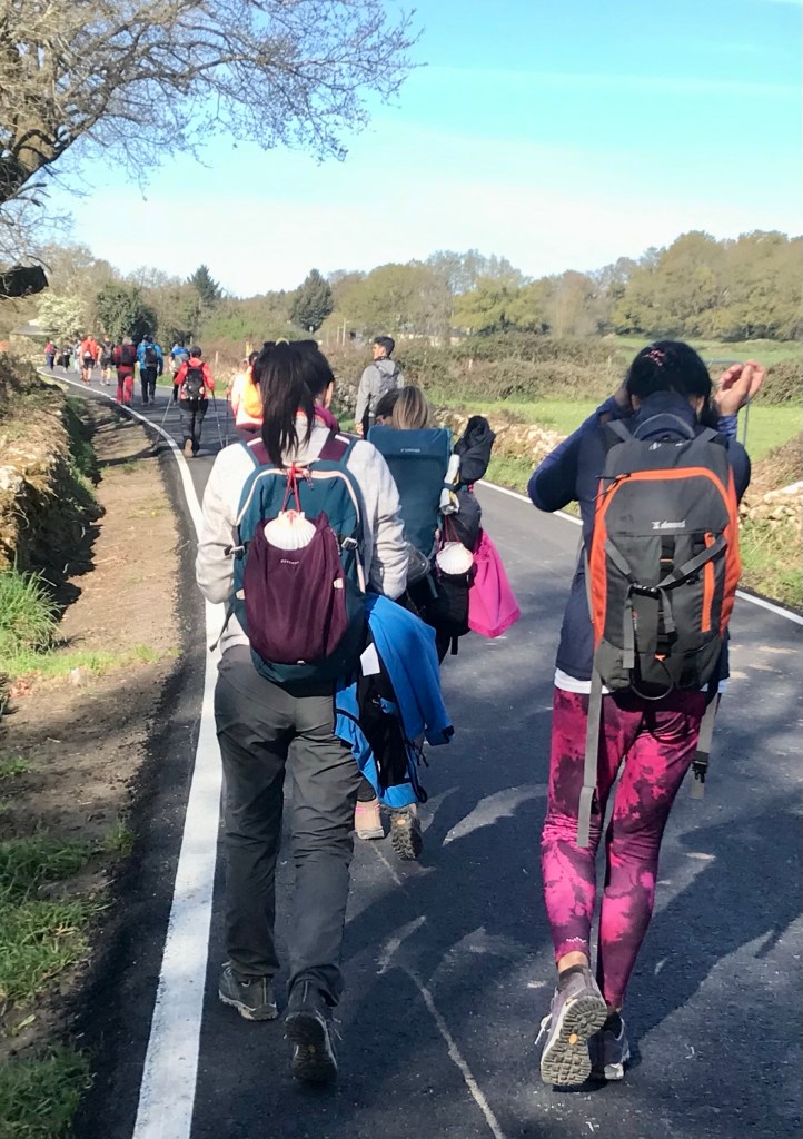 Faire 100 km permet d’obtenir la compostela, le papier qui permet de dire que l’on a marché sur le chemin de Saint-Jacques, c’est pour cela entre autres, qu’il y a tant de monde aujourd’hui.