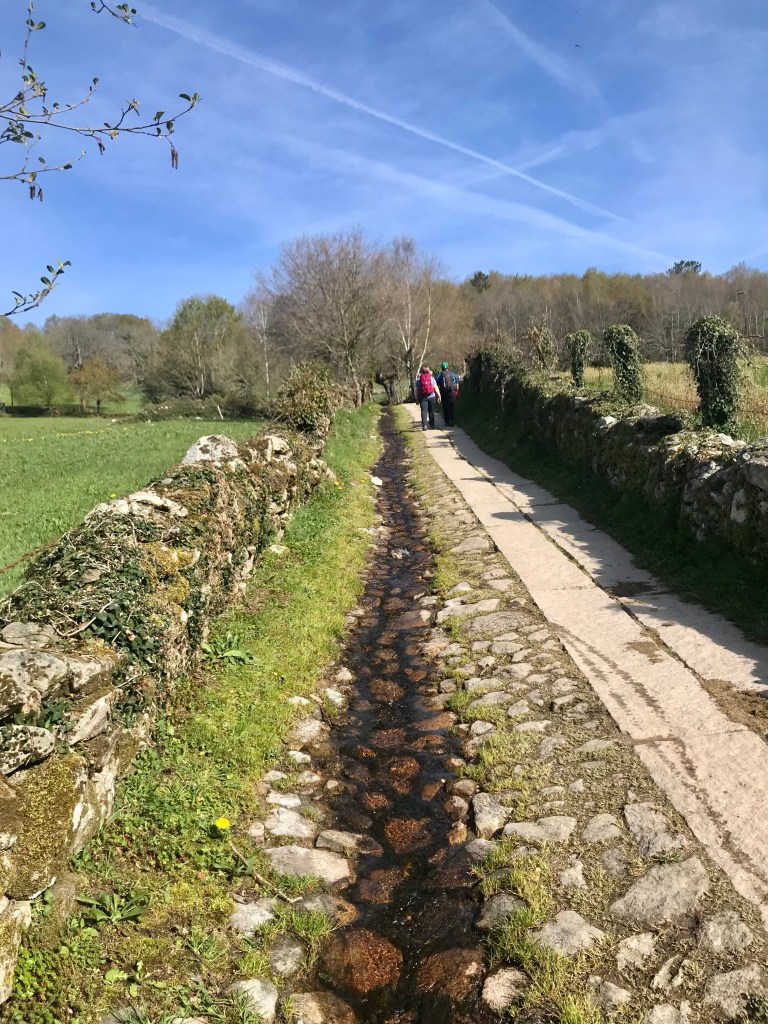 J’ai fini par retrouver le chemin, ça défile bien plus que les autres jours, on voit qu’on se rapproche de Saint-Jacques et que c’est la semaine sainte. Ça parle espagnol sans arrêt alors que jusqu’à présent nous n’étions qu’avec des étrangers.