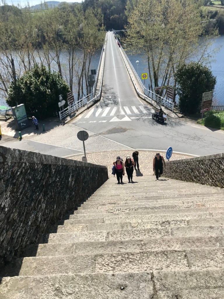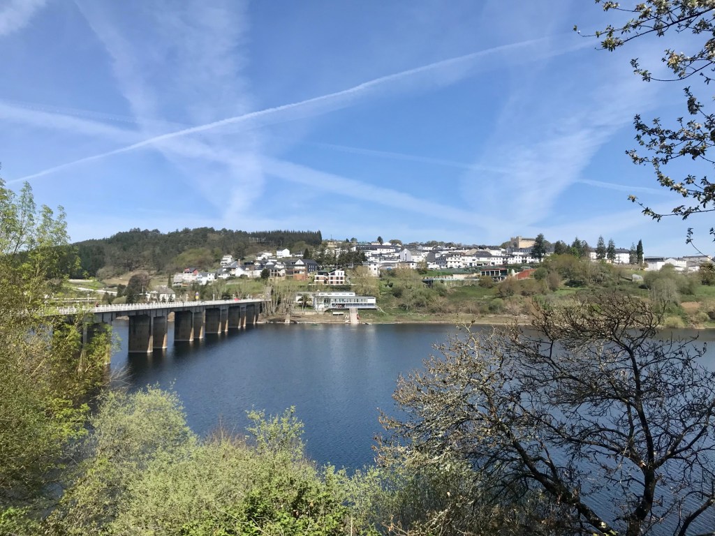 Ça y est je suis arrivée à Portomarín. Retenue d’eau sur le Miño.