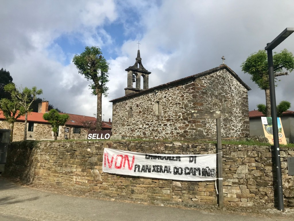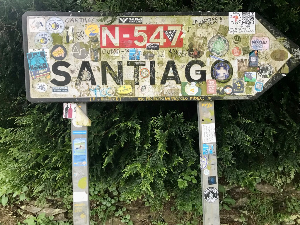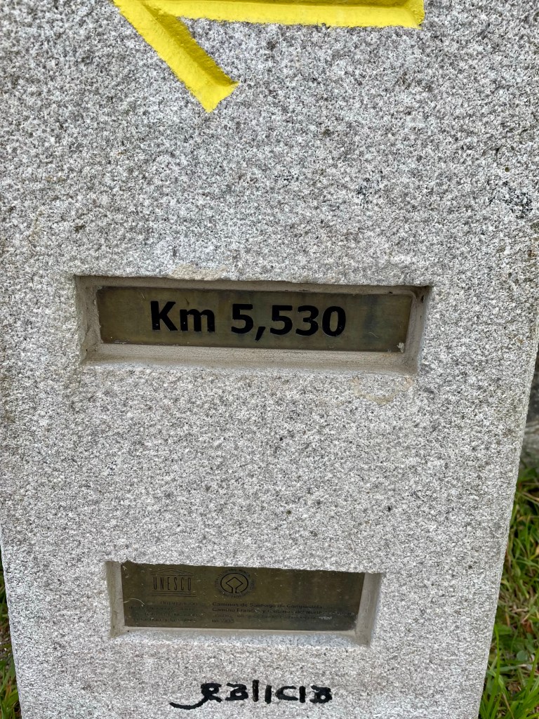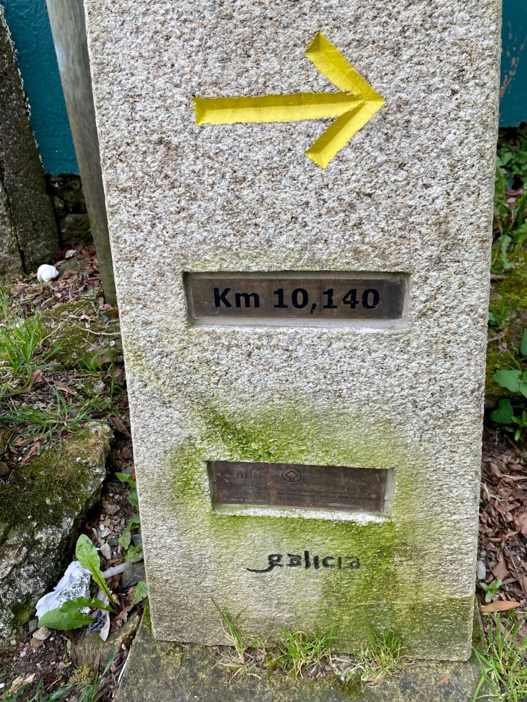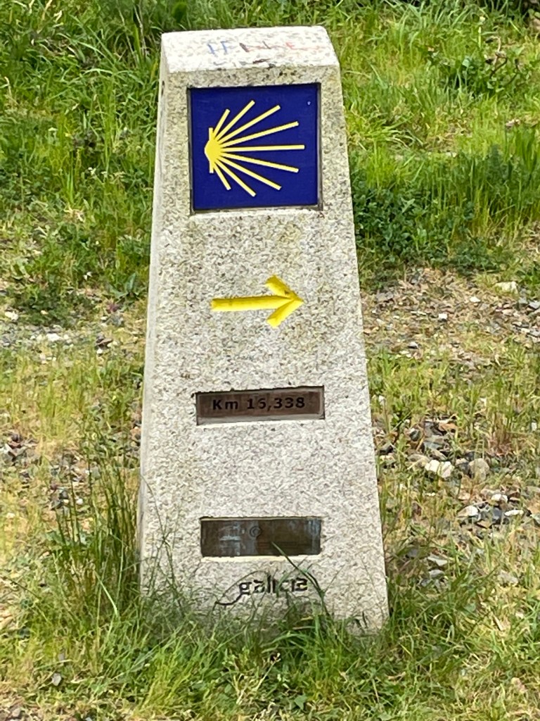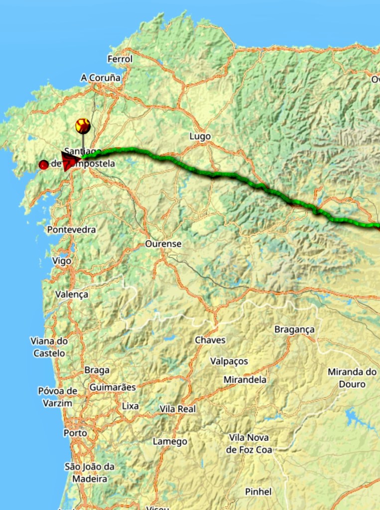 Yves vient de faire tout ce chemin vert, d’Astorga à Santiago, soit 260 km. Nous avions fait 740 km en 2018 de Valencia à Astorga. Un joli chemin de 1000 km.
