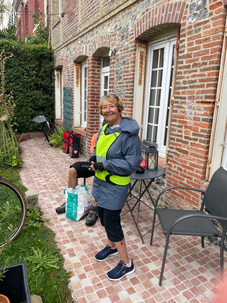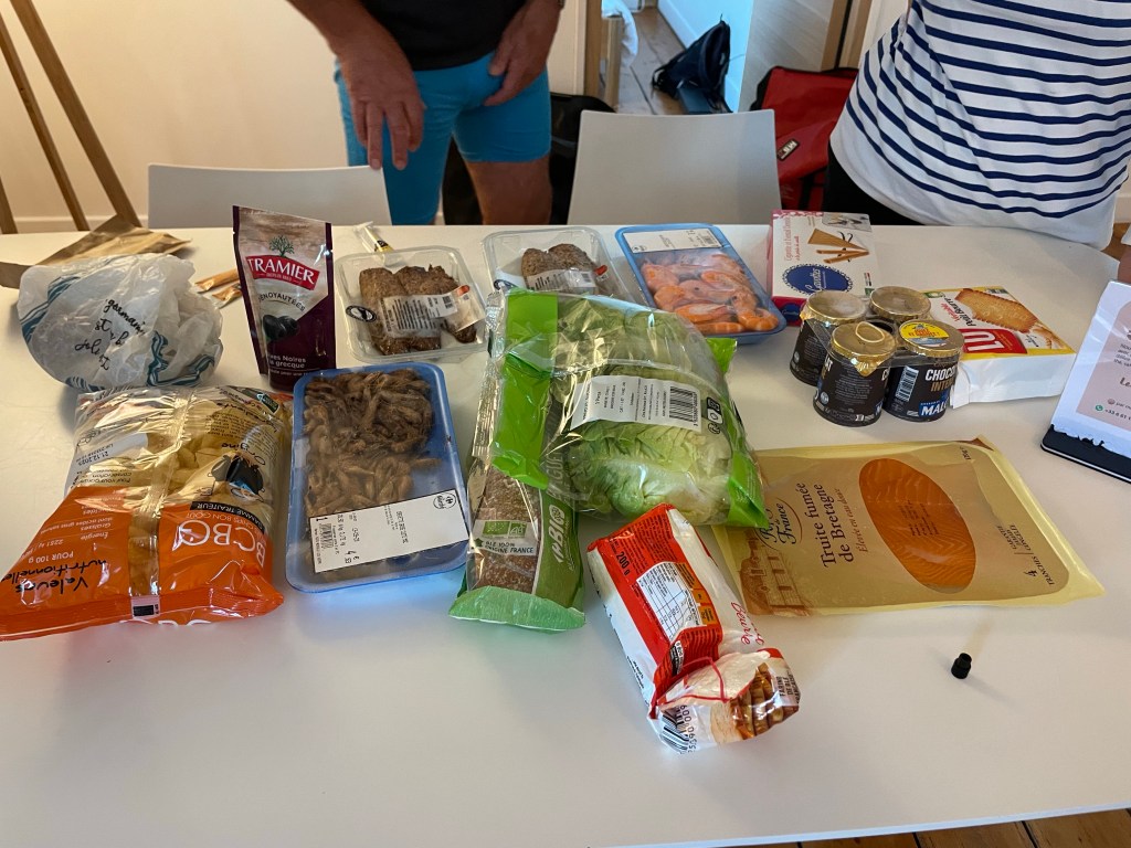 La fin de l’étape était Dieppe. En fait nous avons réservé un bel appartement 6 km avant. La journée a été longue, niveau : « je me dépasse ». Il y a trois niveaux sur la Vélomaritime : en famille, j’ai l’habitude et je me dépasse. Donc aujourd’hui c’était difficile et long. A l’unanimité nous avons décidé d’aller à pied faire des courses pour le repas pendant qu’Yves se reposait. Une petite heure de marche aller et retour ça fait du bien aux jambes. Le repas de supermarché était bien bon.