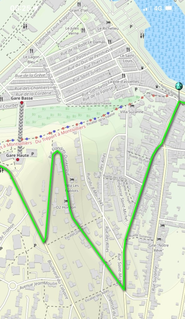 Le Tréport. Une belle découverte sur notre carte. Gare basse, gare haute. Si on allait voir s’il prennent les vélos ? Ça ferait un côte de moins.