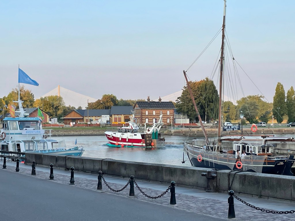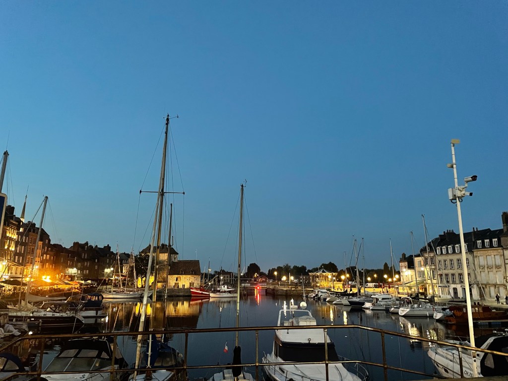 Nous avons mangé sur ce quai. Les restaurants sont pleins. Notre logeur nous a dit qu’il y avait 110 restaurants à Honfleur.