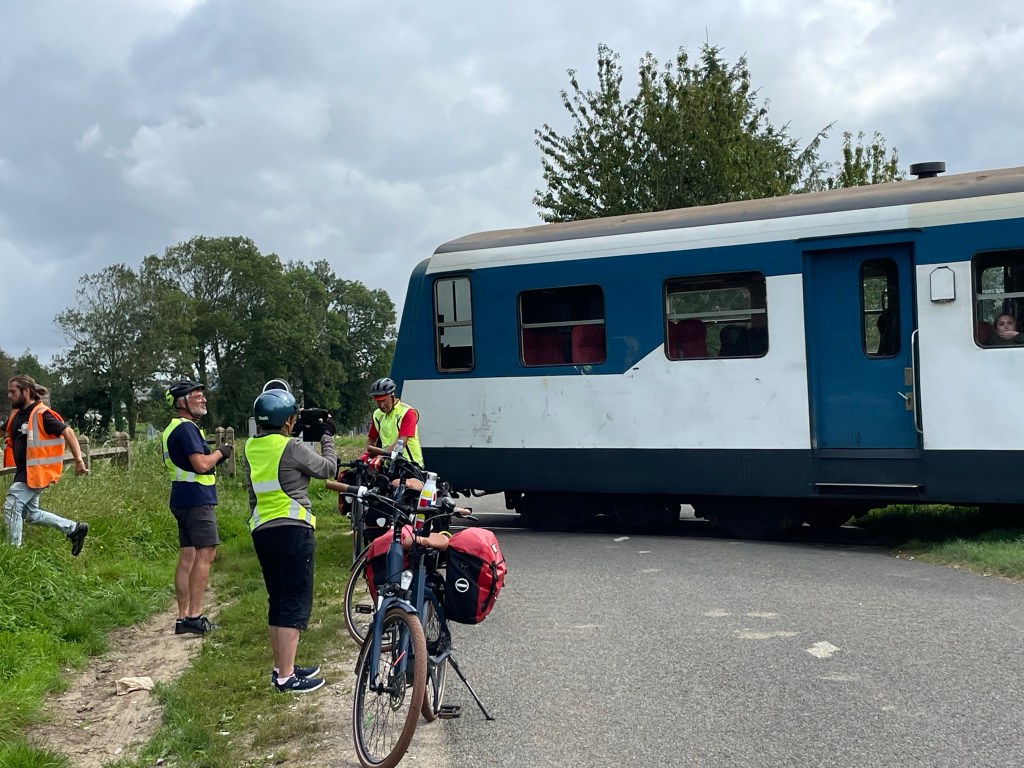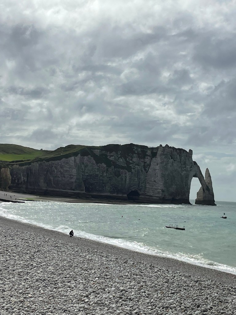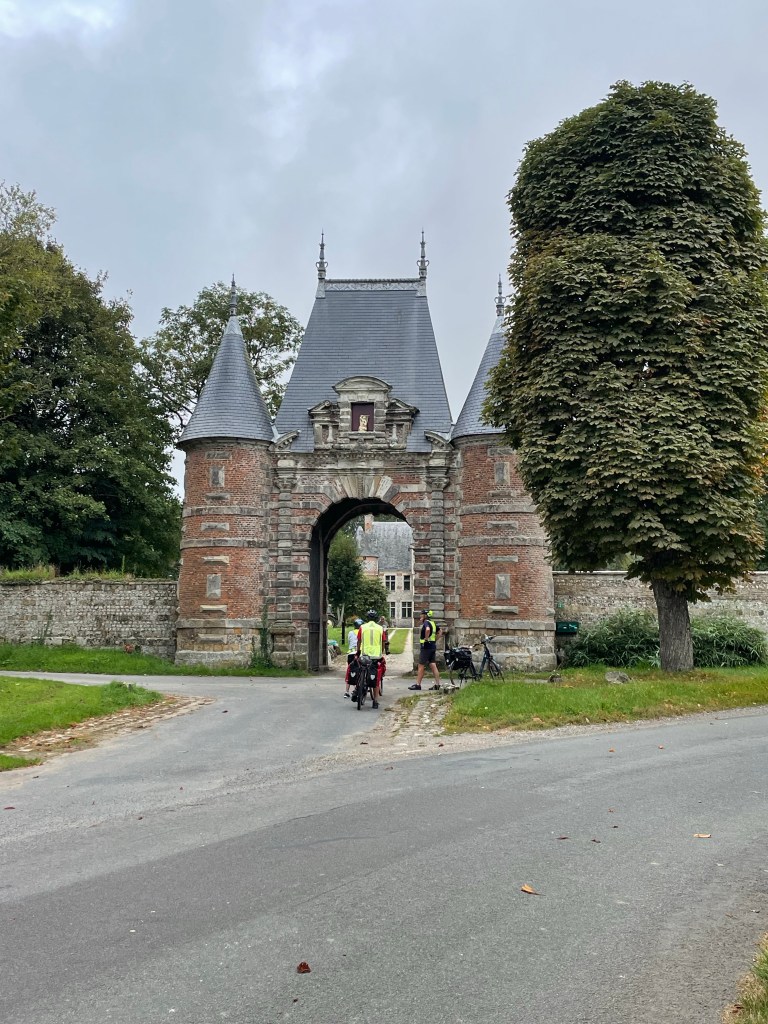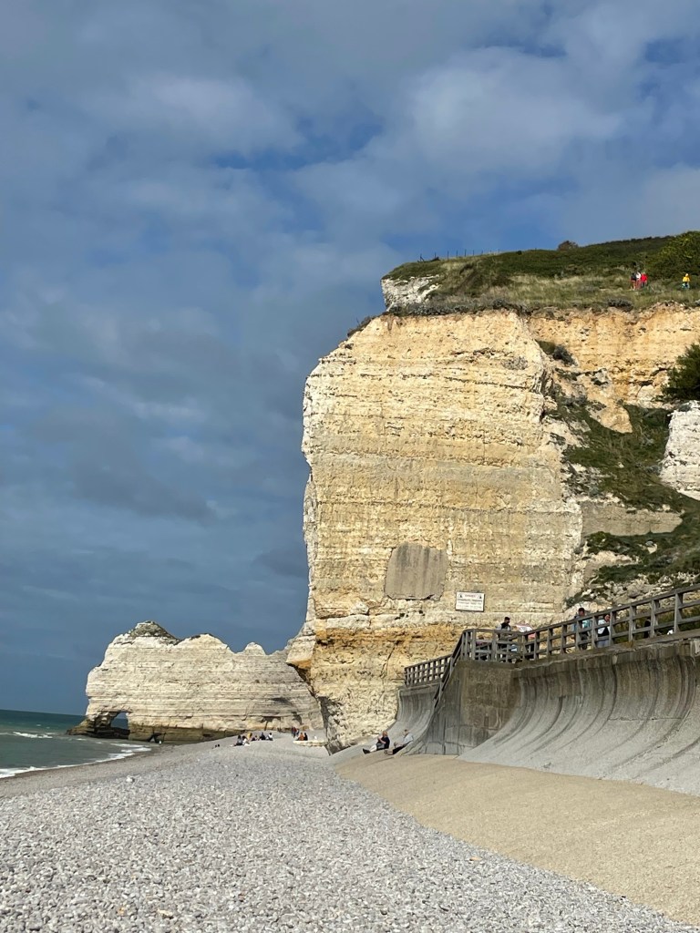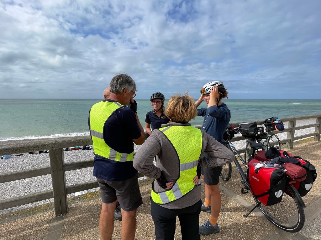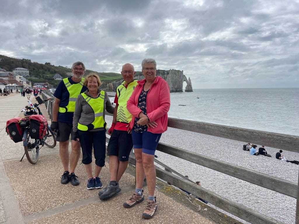 Etretat, une jeune belge que nous avons rencontré dans le Parc du Marquenterre le jour du rallye, nous prend en photo. Nous avons pédalé avec elle lorsque nous cherchions notre route.