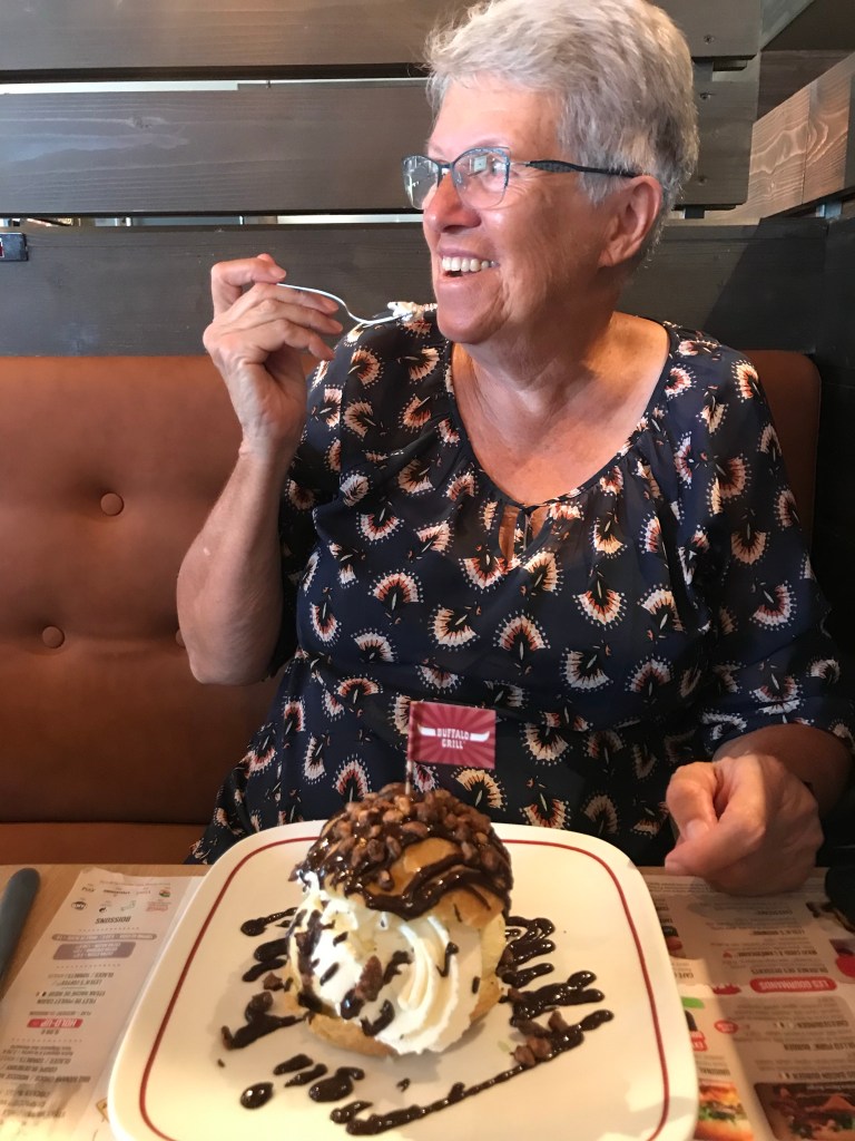 En attendant l’heure, nous mangeons !!! Moi qui n’avais pas faim me voilà en train de manger ce superbe dessert.