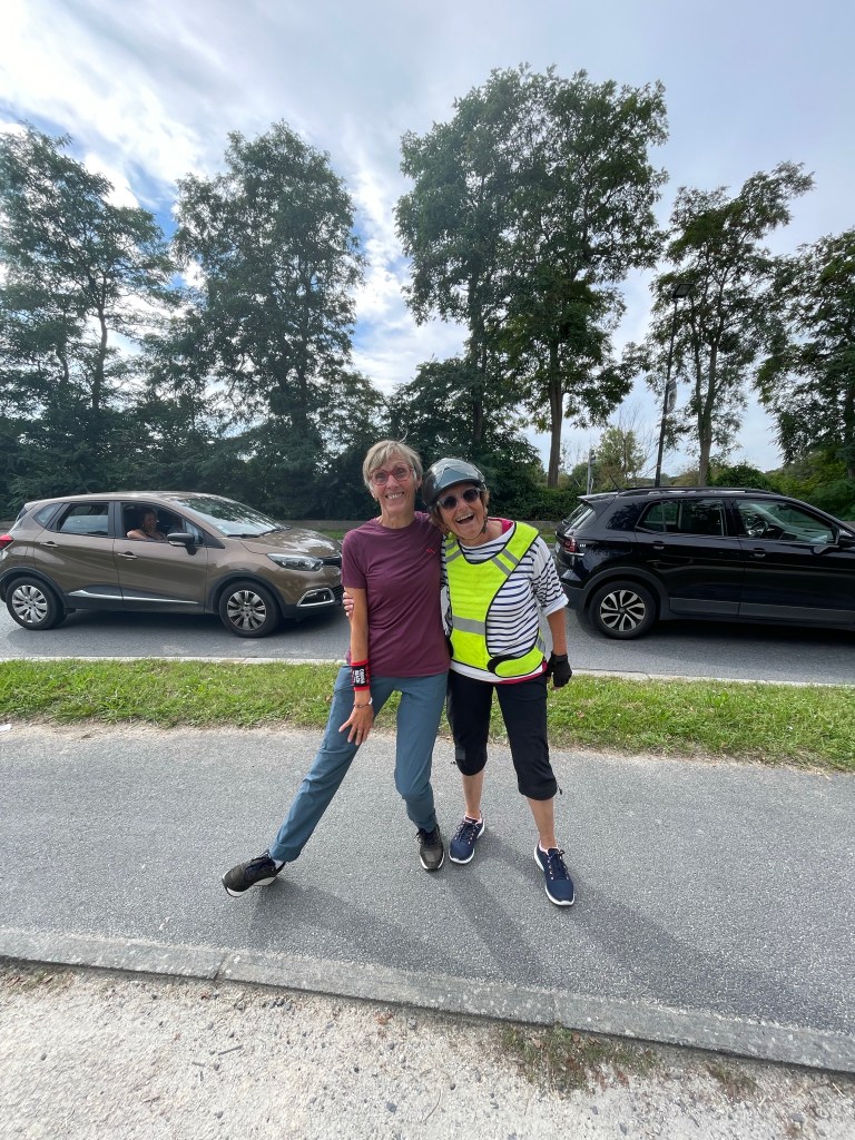 Extraordinaire. Françoise Chevalier est allée faire de la marche nordique à Sallenelles, elle rentre chez elle. Elle aperçoit le gros de la troupe (les trois qui sont toujours devant moi et que je n’arrive pas à rattraper), elle klaxonne, pas de réaction… j’arrive enfin et j’entends crier : Aline, Aline, depuis la vitre d’une voiture, je crois rêver mais qui peut bien m’appeler ? C’est Francoise notre amie de Caen que nous avons connue à Madère avec Claire en même temps que Jean-Luc et Christine…