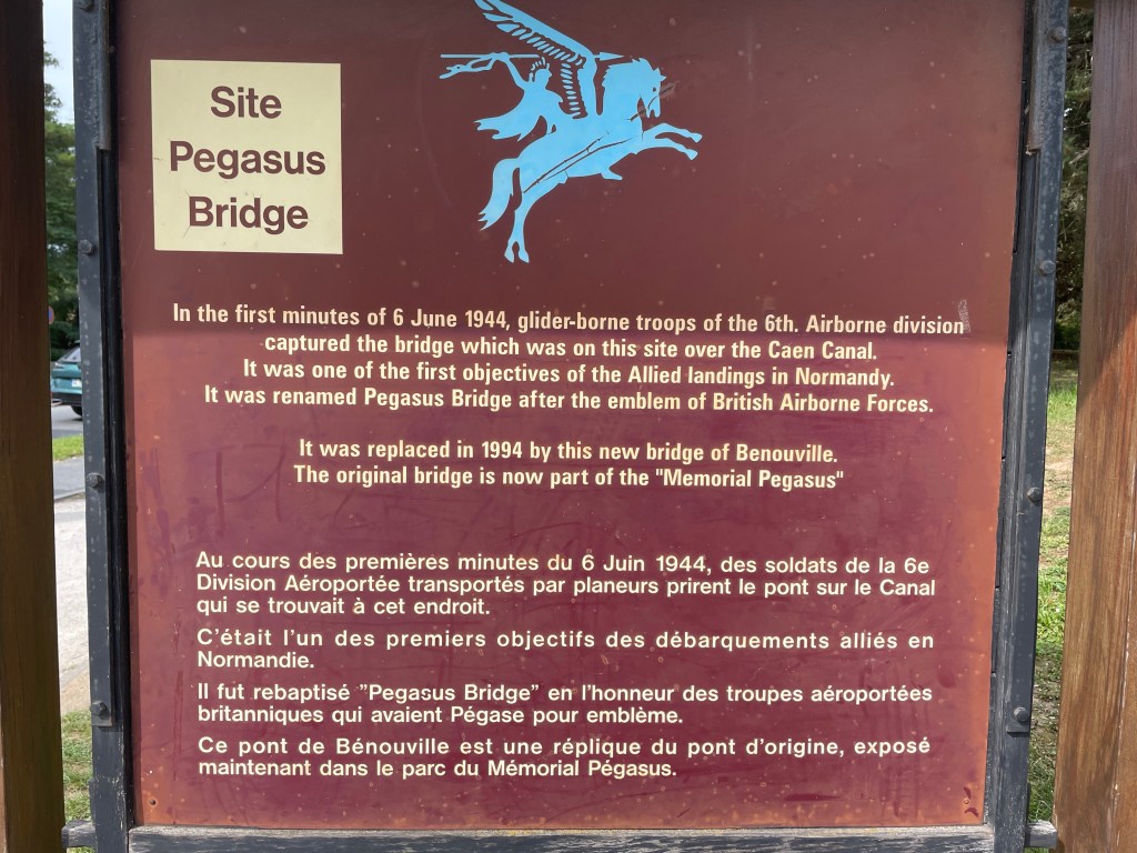 Blonville-sur-Mer – Houlgate – Cabourg – Merville-Franceville-Plage – Baie de Sallenelles – Pegasus Bridge – Caen – Audrieu en train – Tilly-sur-Seulles – Juaye-Mondaye – 60 km.