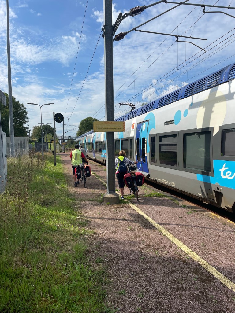 Nous voilà installés dans le TER Caen Granville, nous nous arrêtons à Audrieu, pour aller à Juaye-Mondaye chez Chrisine.