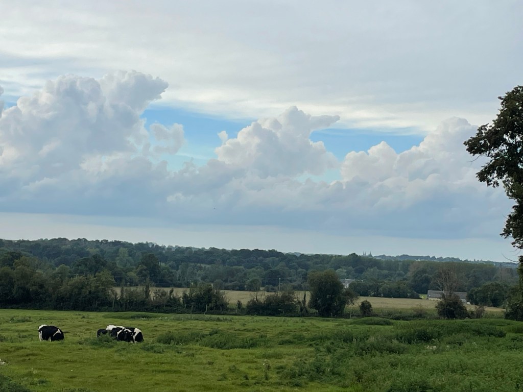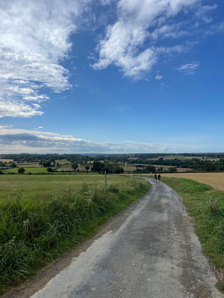 Au loin, du côté droit, la cathédrale de Bayeux.