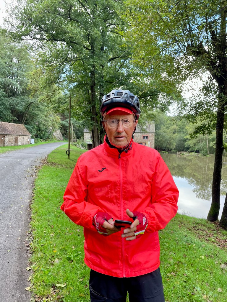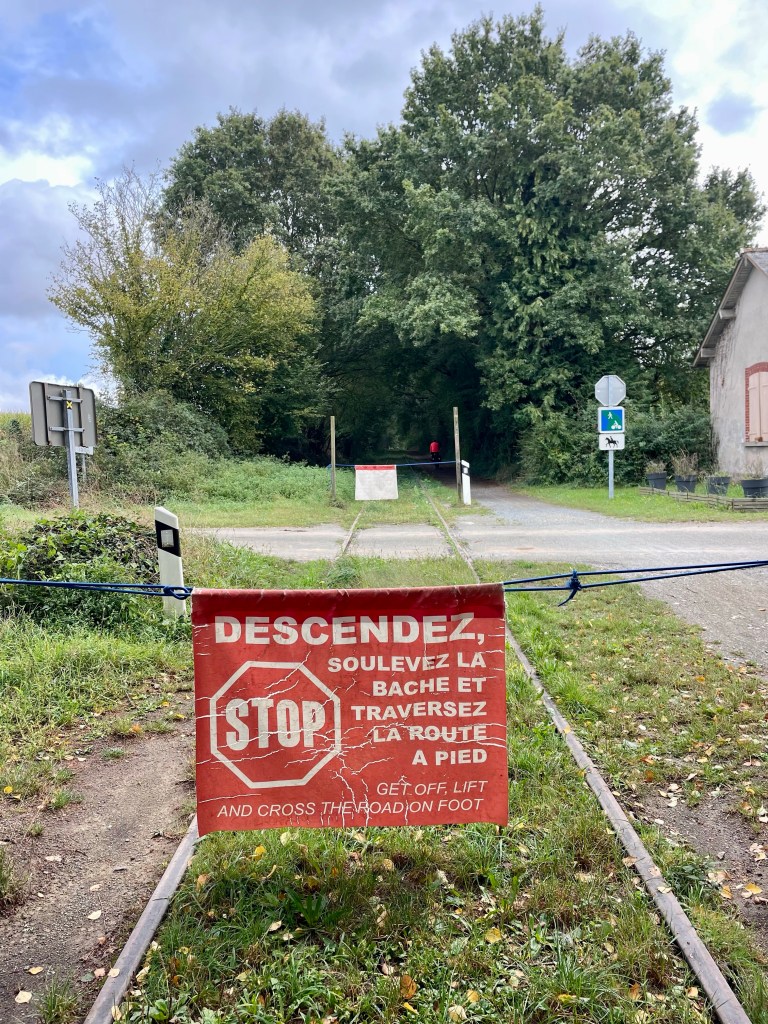 Moi aussi je pédale !!! Le paysan du coin, m’a annoncé la présence de la corde, c’est pour empêcher les vaches de passer, royalement Yves me soulève la corde.