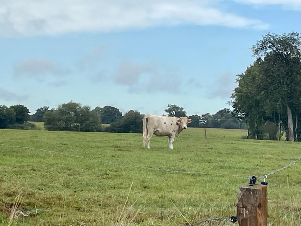 J’aurais aimé faire une photo des vaches avec des tâches marron que nous voyons depuis le début, et bien, il n’y en a plus, il n’y a que des vaches blanches !!!