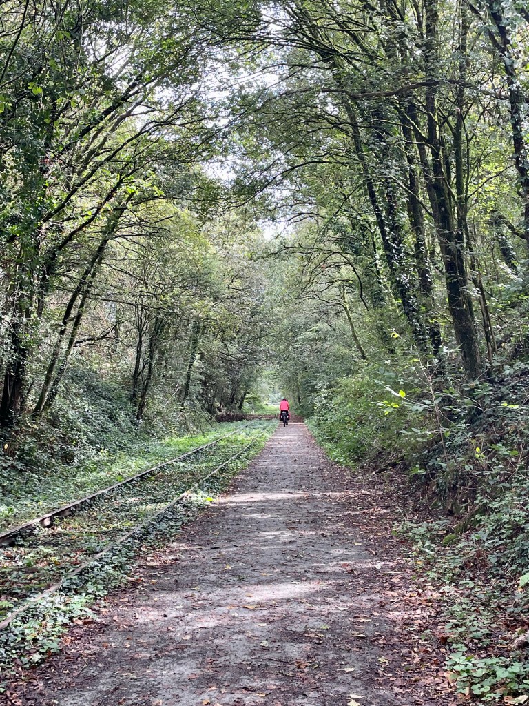 Retour sur la voie verte. Rails pour le vélo rail.