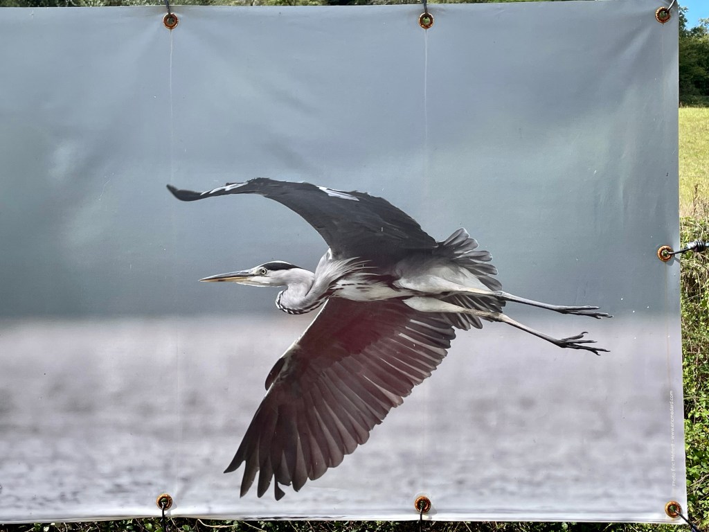 Héron cendré. Expo photos à côté d’une des nombreuses écluses.