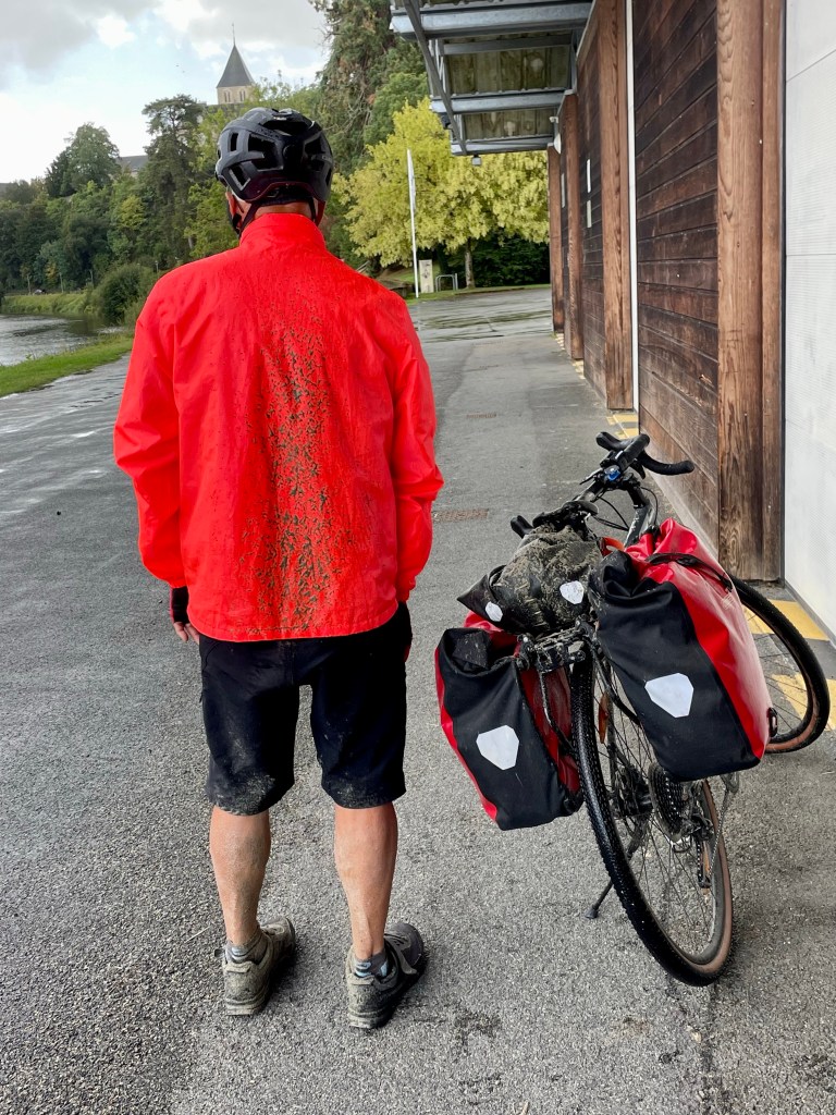 Nous avons pris la pluie, le chemin de halage n’est pas goudronné et Yves n’a pas de garde-boue !!!